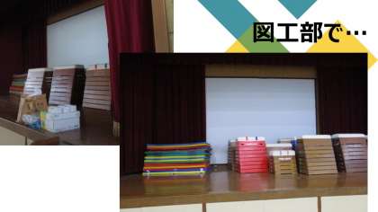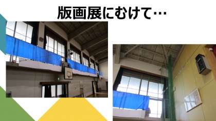 版画展の作品を金曜日に貼付け・掲示するのですが、その下準備として、図工部の教員が体育館に参集し、来週の「版画展」に向けて、ワイヤーを取り付けたり、多くの跳び箱やマットを移動させたりしました。