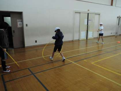 また、体育館全体を使って色々な体勢で走る運動もしています。
