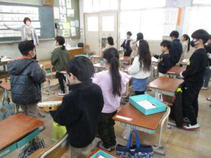 使っている楽器は、タンブリン、トライアングル、すず、カスタネットです。みんながどの楽器も使えるようにしています。