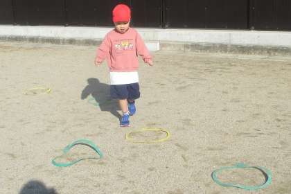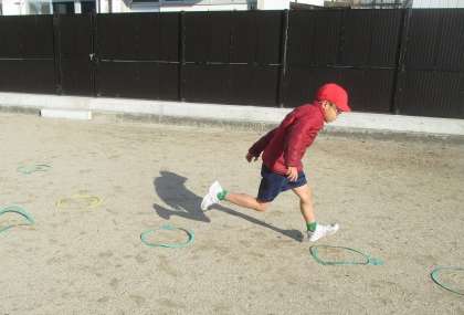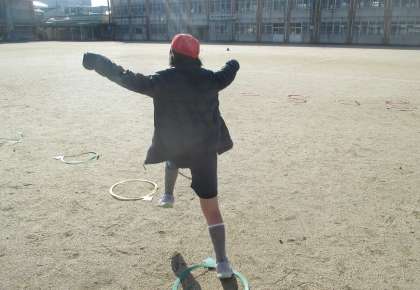 今日は、天気予報でも3月くらいの暖かさと伝えられていた通り、体育をしていても気持ち良い日でした。けんステップという、輪を地面において、跳び遊びをしました。自分たちで並べるのですが、なかなかな難易度で、そこがまた、楽しかったです。