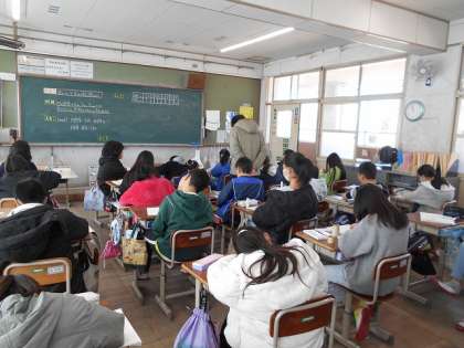 直径を1センチずつ増やしたときの円周の長さを表に書きこみます。円周率を使い、円周の長さを求めました。円周の長さは、円の直径の長さに比例するのかなど確かめました。