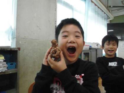 1年生は、図画工作科で「いっしょにおさんぽ」を学習しました。粘土で、自分と一緒にお散歩してみたい生き物を作る学習です。