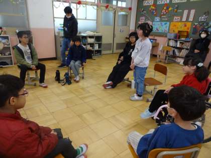 みんなで楽しくゲームをして、6年生の卒業をお祝いしました。ビンゴや玉入れ、紙コップ積みで盛り上がりました。最後に、卒業のお祝いに素敵なメダルを送りました。「とっても楽しいお楽しみ会だったね。」と笑顔いっぱいのみんなでした。
