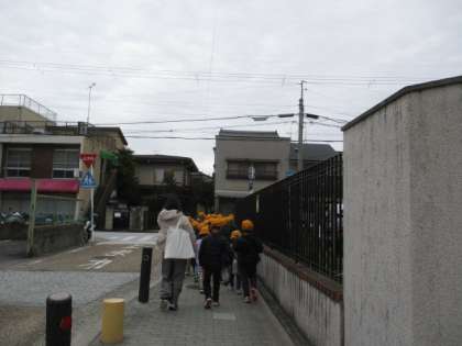 1年生が新入生に向け、校区内の保育園や幼稚園に楽しい学校生活について話をしにいきました。「校長先生、楽しいこと伝えてくるね。」「いっぱい頑張ってくるね。」と言いながら、ハイタッチをして出発しました。