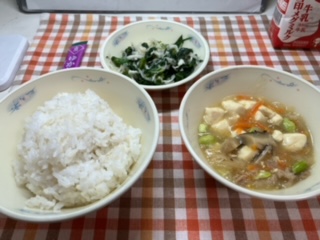 五目豆腐は、温かくってごはんによく合いました。今日も美味しくいただきました。ご馳走様でした。