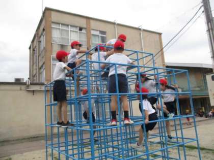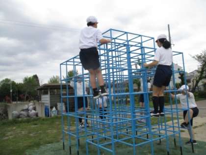 遊具で安全に楽しく過ごせるよう、遊具の使い方について昨年度、どの学年も学習をしました。新しい学年に進級し、各学年、体育の授業開きに、再度、思い出したり、確かめたりしています。