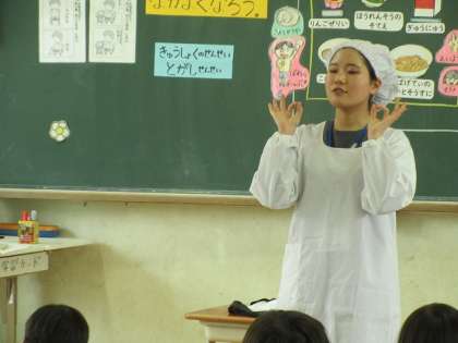給食の食べ方やどうして手洗いやエプロンなどを付けるのかも聞きました。