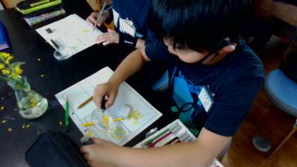 理科の学習で、からし菜とアブラナの花を観察し、花のつくりを調べました。