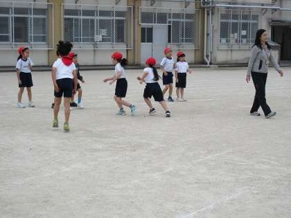 ドンじゃんけんでは、元気よく飛び出して相手方チームを攻めていました。楽しく活動できていました。