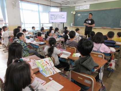 3年生の外国語では、「いろいろな国のことを知ろう」で、いろいろな国のあいさつを学習していました。