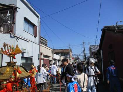 暑い中ですが、子どもたちはやる気満々です。太鼓をたたく、元気にかけ声をかける、お神輿をかつぐ等、それぞれにがんばっています。