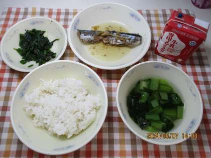 今日の献立は、麦ごはん・牛乳・さんまのしょうが煮・ほうれん草のおかか煮・すまし汁でした。
