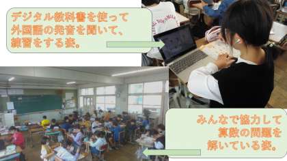 また、外国語では、デジタル教科書を使って、音声ソフトで英語の発音を何回も聞いて練習する姿が見られました。