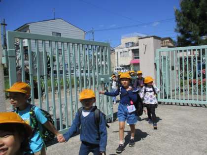 1・2年生が遠足から帰ってきました。全員参加で、梅小路まで、歩き、たっぷりと楽しんでから、帰校しました。