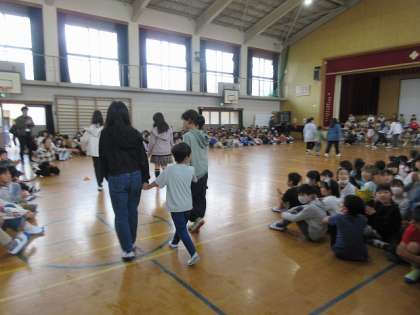 1年生は、上級生からお祝いの歌やメッセージをもらいました。学年からのメッセージや歌・踊りは、どれをとっても、たいへん気持ちがこもっていて、1年生を歓迎するものでした。