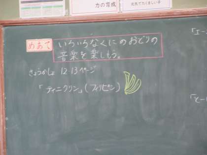 「いろいろなくにのおどりの音楽を楽しもう」で、音楽を聴きながらからだを動かしていました。
