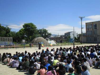 真剣な面持ちで避難し、校長先生のお話を聞きました。