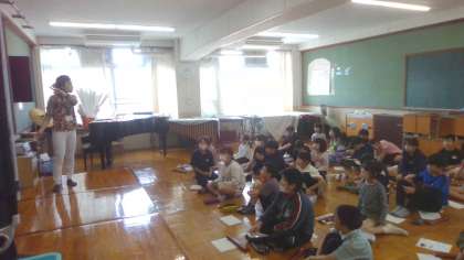 不思議な言葉に児童も興味津々。自分で楽譜が読めるようになれば、興味のある曲の楽譜を検索したり借りたりして、鍵盤ハーモニカやリコーダーで演奏ができます。