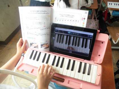 ただし、新しい曲には、指くぐりや指またぎといった難しい技が・・・。そこで、タブレットのお手本動画を見ながら練習を進めることとしました。