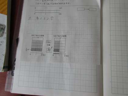 6年生算数は、「分数÷整数の計算のしかたを考えよう」です。