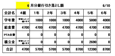 6月の銀行振替日