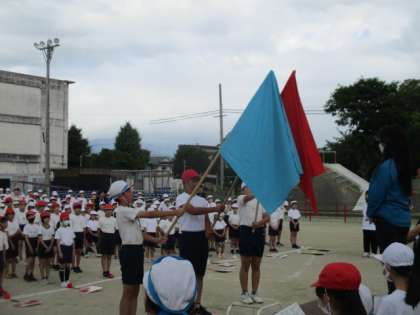 前回の練習に引き続き、開閉会式の練習をしました。応援練習では、エール交換だけでなく、各色分かれての応援練習がどんどん盛り上がってきています。今日も応援団の高学年の皆さんが、各色の応援を引っ張ってくれています。