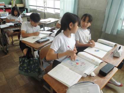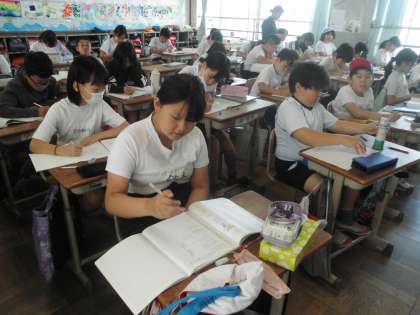 算数では、小数のかけ算の学習に取り組んでいます。何問も繰り返して練習するうちに、理解が進み、スラスラ解けるようになると「楽しくなってきた!」という声もちらほら聞こえるようになりました。友達と教えあったり、確かめたりしながら、頑張っています。