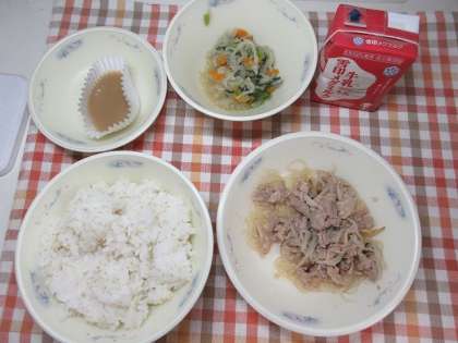 今日の給食は「麦ごはん・牛乳・豚肉とこんにゃくのいため煮・切り干し大根の煮びたし・ういろう」でした。