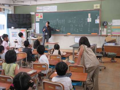 1年生の教室をのぞくと、ひらがな「は」を練習していました。
