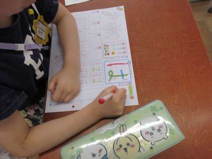 「は」のつく言葉たくさん出てましたね。書き順も学習して、プリントに自分の名前のお手本を見ながらきれいに書いていました。