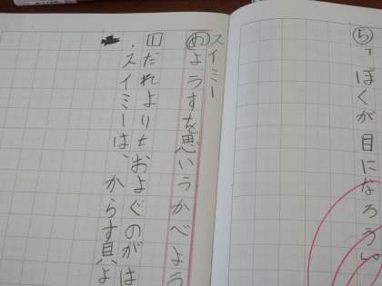 2年生は、国語は「スイミー」です。めあては、「ようすを思いうかべよう」で、場面1のところを学習していました。