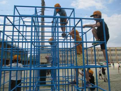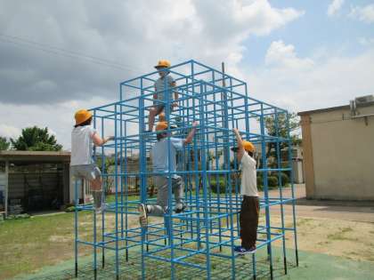 中間休みにジャングルジムへ行くと、はじめは少人数でしたが、どんどん友達が集まってきて大人気の様子でした。
