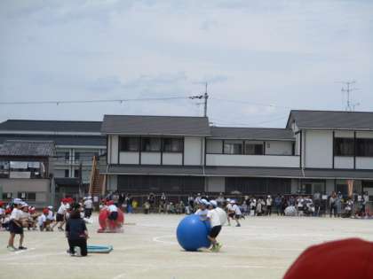 2年生の団体競技「心を一つに!!大玉リレー!」を行いました。2年生の子どもたちが、息を合わせて上手に大玉を転がす様子が、成長を感じました。