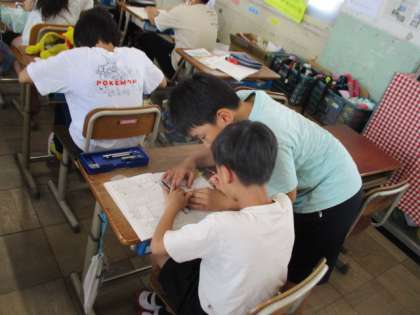 分度器を使って角度を計ることを学習した子どもたち。