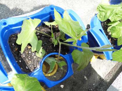 アサガオがぐんぐん成長しています。