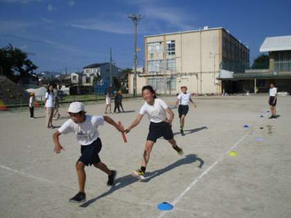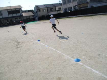 暑い中でしたが、水分をとりながら、休憩をしながら、でも元気いっぱいに活動しました。今日はウォーミングアップのあと、リレー!和気あいあいとした雰囲気の中にも真剣に走る姿がとても素敵でした。