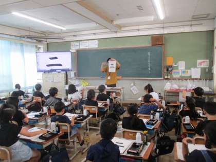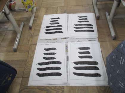 姿勢を正して、筆を立てて、真剣な表情で書く姿が素敵です。しーんとした教室の雰囲気も素晴らしいです。