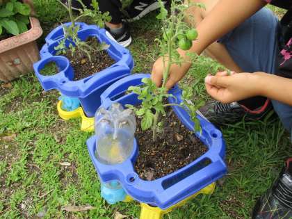 もっと花が咲き、大きな実がたくさんなるようにみんなで肥料をやりました。