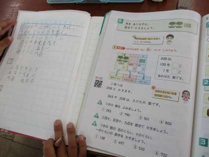 100をこえる数について、そのよみ方やかき方について学習しています。