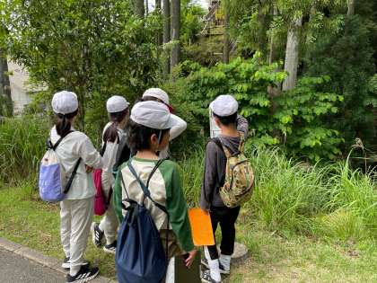 ただいま、問題解答に苦戦中!スコアオリエンテーリングの時間です。地図を頼りにポイントを見つけ、問題を解いていきます。
