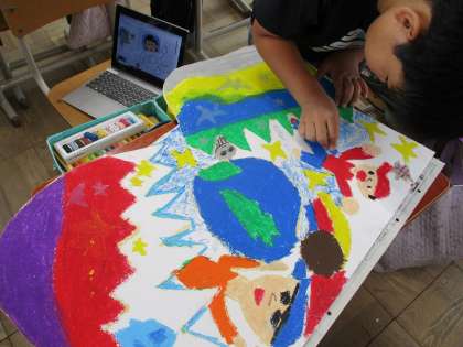 たくさんのかわいい動物たち、おいしそうなお菓子、「宇宙」や「虹の世界」など、子どもたちの心に秘めていた夢のような世界があふれ出ています。