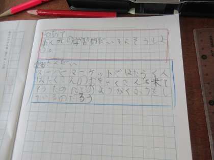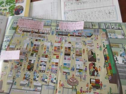 社会「商店のはたらき」では、「たん元の学習問題をつくり、予そうをしよう。」をめあてに、みんなの疑問からなんでスーパーマーケットで買い物する人が多いのか?どんなくふうをしているのか?を考えていました。