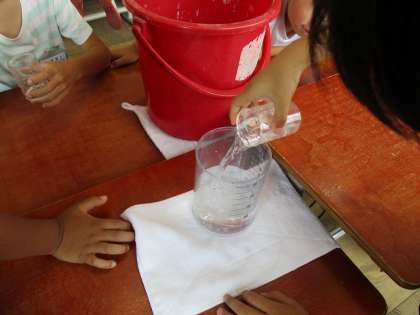 「1リットルのマスに1デシリットルのマスを使うと何回水が入るかな?」