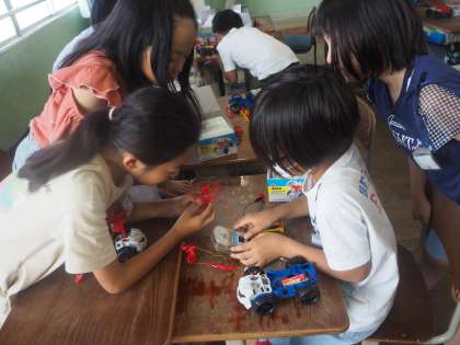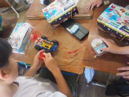乾電池のつなぎ方を変えると電流の大きさはどのように変わるのか、検流計を使って調べました。