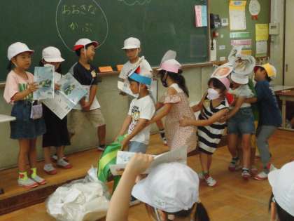 チームで練習してきた音読げきを楽しみました。みんなそれぞれ、自分の役をがんばっていました。