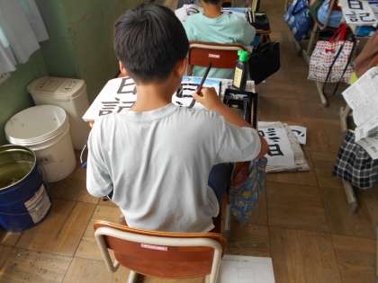 めあて「点画の接し方と間隔に気をつけてかこう」に向かって、丁寧に書きました。毛筆も硬筆も丁寧に文字を書くことは大切ですね。