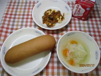 今日の献立は、黒糖コッペパン・牛乳・夏野菜のボロネーゼ(チーズ入り)・野菜のスープ煮でした。