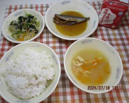 いわしのかわり煮は、味がしみていてとても美味しかったです。骨も柔らかくなっていました。冬瓜のくずひきは、冬瓜が出汁を含み、とろっとしていてこれもおいしかったです。今日もご馳走様でした。