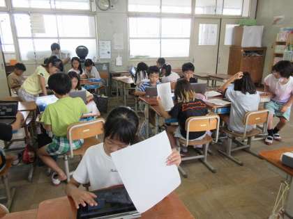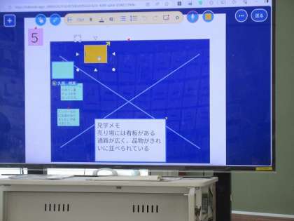 社会科の学習では、先日見学をしたスーパーの工夫を一人一人タブレットを使い学習していました。
