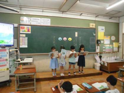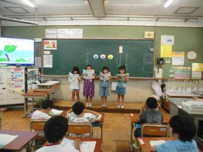 4人組で、工夫して読んでいました。お家での音読、がんばっていますか?